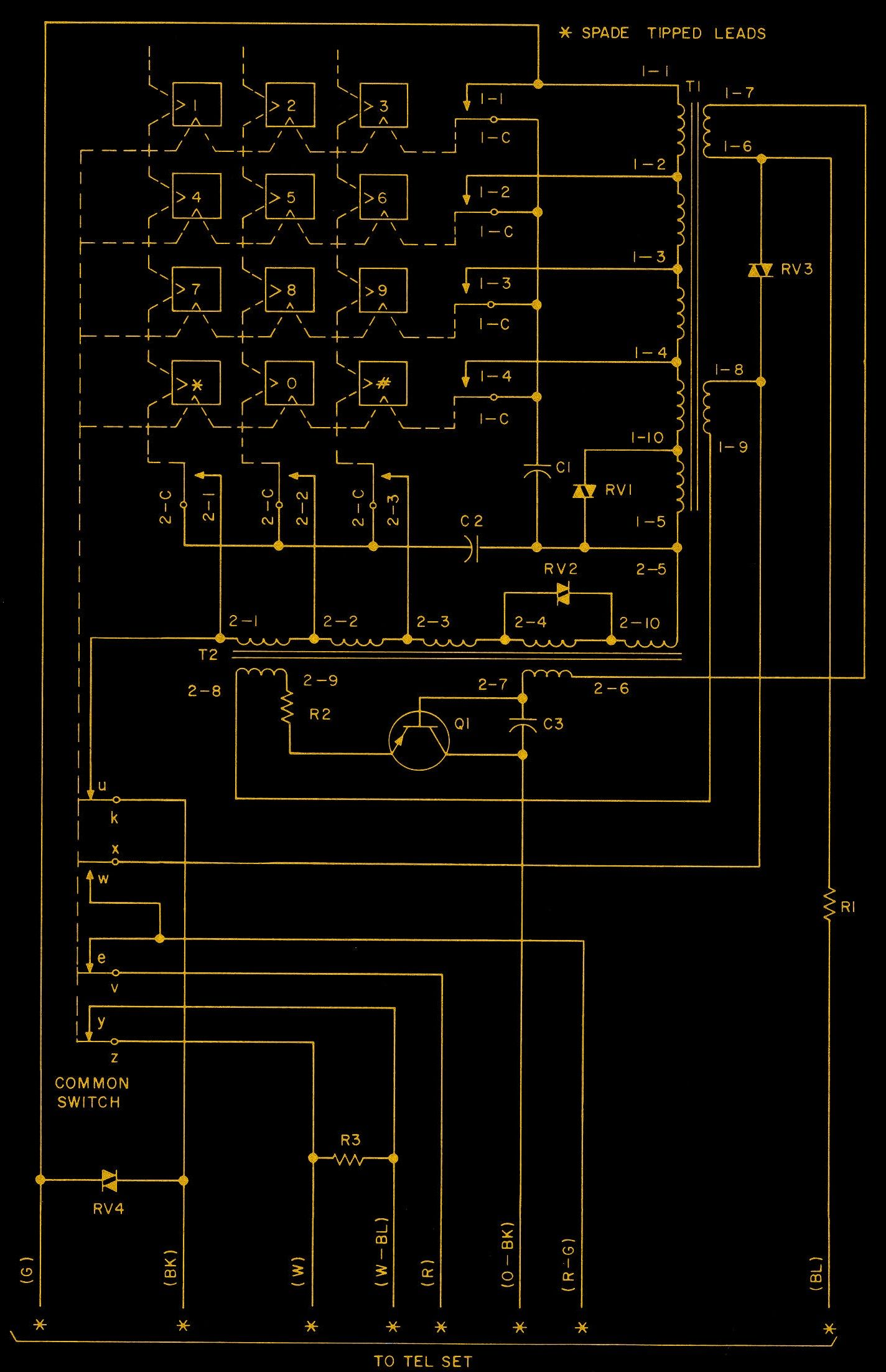 Suppose you squint hard enough at this schematic of the ubiquitous 35-Type DTMF keypad (via Telephone Collectors International). In that case, you might see how the keys relate to inductors that attenuate a single-transistor oscillator to produce the dual tones. I'm not an electrical engineer. Don't quote me on this.